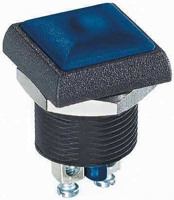 This is SPST-NO Momentary Push Button Switch IP67 Panel Mount manufactured by APEM. The manufacturer part number is IRC3V2B2. It is designed with an adorable square shape actuator . The actuator has an adorable blue colour. Illumination Option no. The product is available in panel mount configuration. It is IP rated with ip67. The rated contact current is 2 a @ 250 v ac. The panel has a 14.8mm cut-out diameter. Moreover, the product has a nominal 250v ac voltage rating. The contact is equipped with single pole single throw (spst) configuration. The product carries button actuator. The panel cut out size includes 16mm. The terminal is a screw type. It provides momentary switch operation.