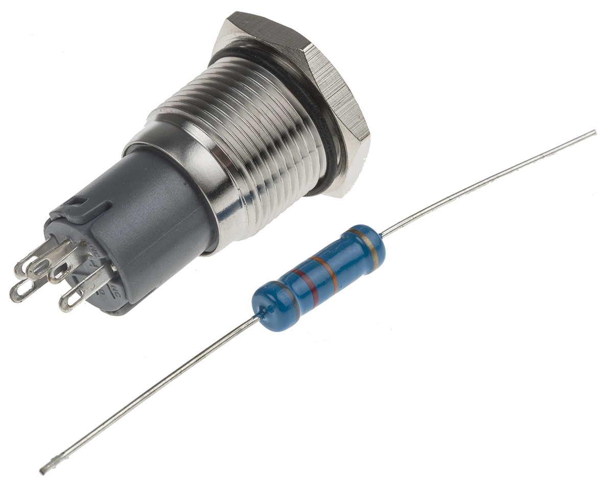 This is SPDT On-On Push Button Switch IP65 IP67 16 (Dia.)mm Panel Mount Blue LED 250V ac manufactured by RS Pro. The manufacturer part number is 811-8395. Illumination Option yes. The product is available in panel mount configuration. Moreover, the product has a nominal 250v ac voltage rating. The rated contact current is 3 a @ 250 v ac. The panel has a 16mm cut-out diameter. It is IP rated with ip65, ip67. This pushbutton has a round style pushbutton and is easy to use. The LED has an adorable blue colour. While it has an adorable silver colour. It provides latching switch operation. Its contact AC voltage rating is about 250v . The terminal is a solder type. The contact is equipped with spdt configuration. The product is made from sturdy sliver alloy materials.