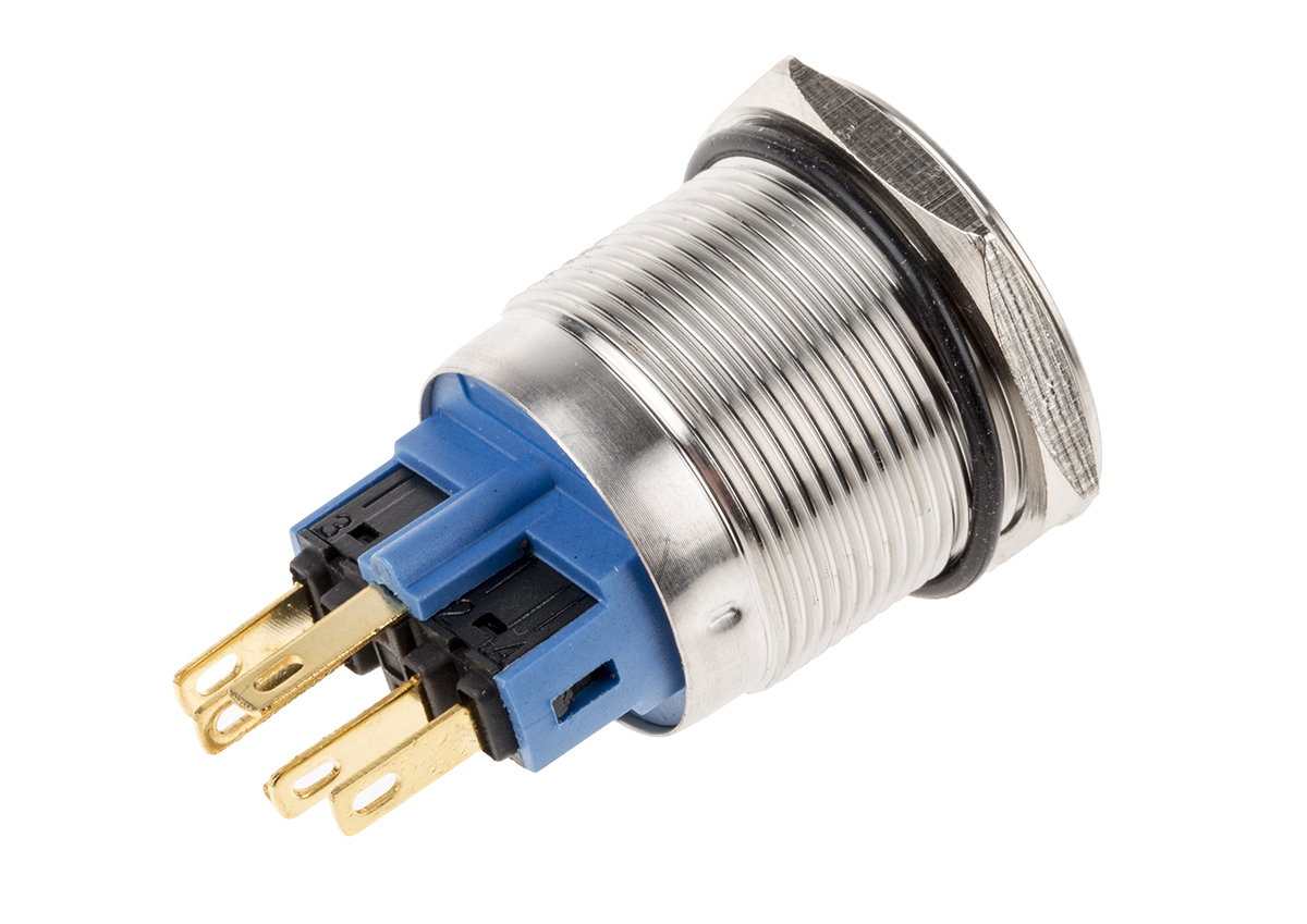 This is SPDT On-On Push Button Switch IP65 IP67 22 (Dia.)mm Panel Mount Yellow LED 250V ac manufactured by RS Pro. The manufacturer part number is 811-8528. Illumination Option yes. The product is available in panel mount configuration. It is IP rated with ip65, ip67. The rated contact current is 5 a @ 250 v ac. The panel has a 22mm cut-out diameter. Moreover, the product has a nominal 250v ac voltage rating. This pushbutton has a round style pushbutton and is easy to use. The LED has an adorable yellow colour. While it has an adorable silver colour. The contact is equipped with spdt configuration. The product has an assigned av03l-b12-m3-fr-y-12v manufacturer part number. It provides latching switch operation. Its contact AC voltage rating is about 250v . The terminal is a quick connect type. The product is made from sturdy silver alloy materials.