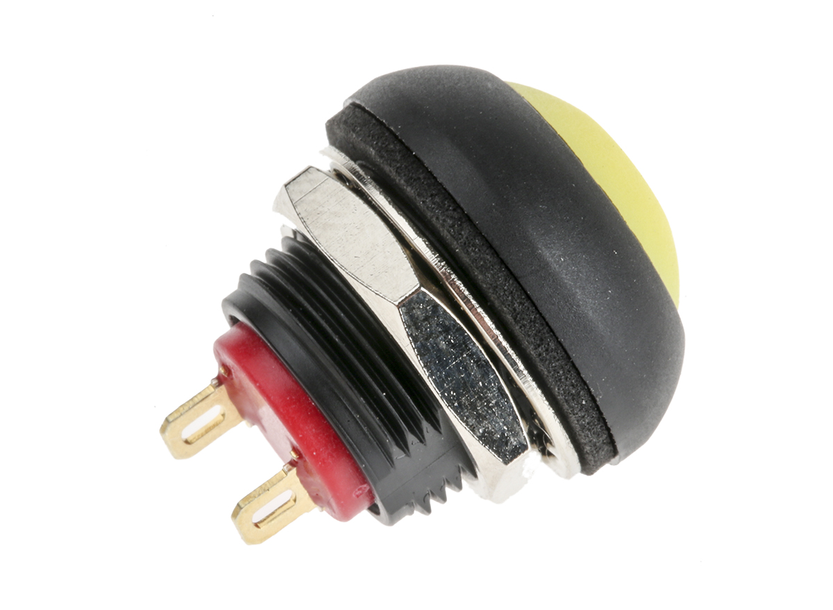 This is SPST On-Momentary Push Button Switch IP67 13.6 (Dia.)mm Panel Mount Yellow LED manufactured by RS Pro. The manufacturer part number is 144-4321. Its contact AC voltage rating is about 32 v, 48 v, 125 v, 250v . Illumination Option no. The product is available in panel mount configuration. It is IP rated with ip67. The rated contact current is 100 (50 v dc) ma, 125 (125 v ac) ma, 200 (250 v ac) ma, 200 (50 v dc) ma, 400 (32 v ac) ma, 500 (48 v dc) ma. The panel has a 13.6mm cut-out diameter. Moreover, the product has a nominal 32 v ac, 48 v ac, 50 v dc, 125 v ac, 250v ac voltage rating. It has about 50v contact DC voltage rating . This pushbutton has a round style pushbutton and is easy to use. The contact is equipped with spst configuration. The casing is finished with an adorable black colour. The product has an assigned pas7b2m1ces5-5 manufacturer part number. It provides on-(off) switch operation. While it has an adorable yellow colour. The terminal is a solder lug type. The product is made from sturdy gold over silver (plated) materials.