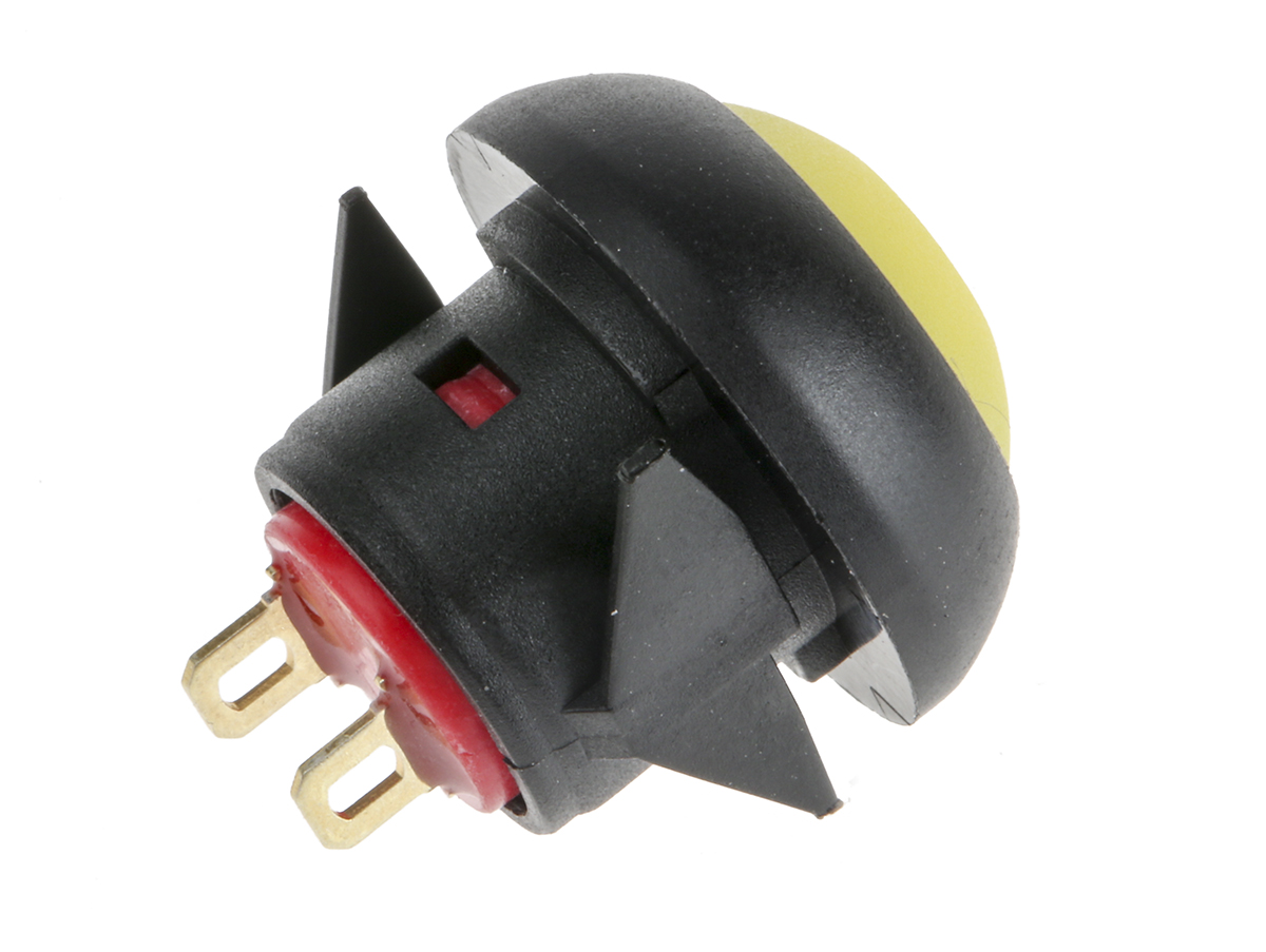 This is SPST Off-Momentary Push Button Switch IP67 13.6 (Dia.)mm Panel Mount Yellow LED manufactured by RS Pro. The manufacturer part number is 144-4357. Its contact AC voltage rating is about 32 v, 48 v, 125 v, 250v . Illumination Option no. The product is available in panel mount configuration. It is IP rated with ip67. The rated contact current is 100 (50 v dc) ma, 125 (125 v ac) ma, 200 (250 v ac) ma, 200 (50 v dc) ma, 400 (32 v ac) ma, 500 (48 v dc) ma. The panel has a 13.6mm cut-out diameter. Moreover, the product has a nominal 32 v ac, 48 v ac, 50 v dc, 125 v ac, 250v ac voltage rating. It has about 50v contact DC voltage rating . This pushbutton has a round style pushbutton and is easy to use. The contact is equipped with spst configuration. The casing is finished with an adorable black colour. It provides momentary switch operation. While it has an adorable yellow colour. The terminal is a solder lug type. The product is made from sturdy gold over silver (plated) materials.