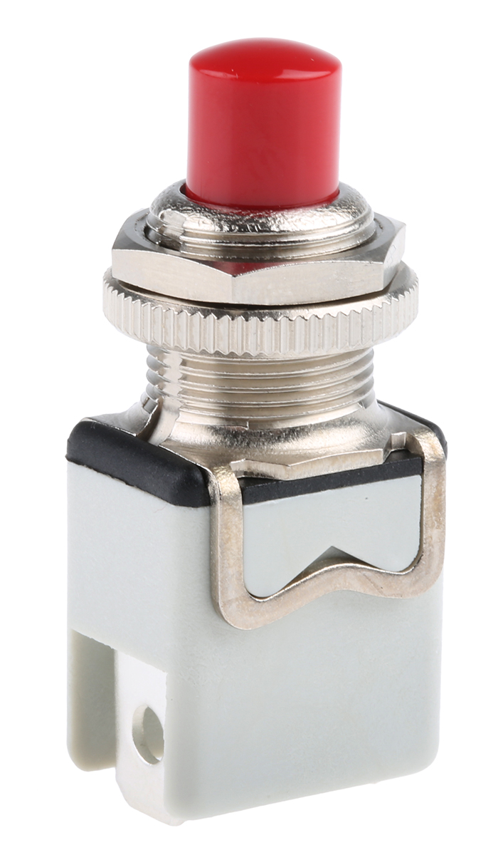 This is SP-NO Momentary Push Button Switch Panel Mount manufactured by APEM. The manufacturer part number is 1213C RED. Illumination Option no. The product is available in panel mount configuration. Moreover, the product has a nominal 250v ac voltage rating. The rated contact current is 2 a @ 24 v dc. The panel has a 12.2mm cut-out diameter. The contact is equipped with spst configuration. The product has an assigned 1213c red manufacturer part number. It provides momentary switch operation. While it has an adorable red colour. The terminal is a solder, tab type. The product is made from sturdy silver plated copper materials.