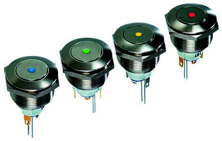 This is Maintained Push Button Switch Blue LED manufactured by APEM. The manufacturer part number is AV031L1EA200. It is designed with an adorable round shape actuator . The actuator has an adorable silver colour. Illumination Option yes. The product is available in panel mount configuration. It is IP rated with ip65, ip67. The rated contact current is 2 a @ 48 v dc. The panel has a 22.2mm cut-out diameter. Moreover, the product has a nominal 48v dc voltage rating. The LED has an adorable blue colour. The product carries button actuator. The panel cut out size includes 19.2 (dia.)mm. The terminal is a solder type. It provides latching switch operation.