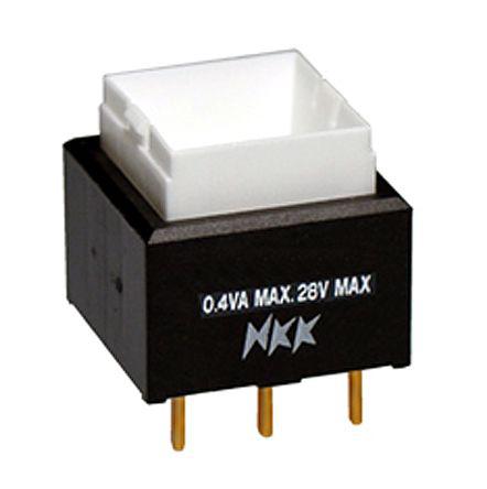 This is SPDT On-Momentary On Push Button Switch PCB 28V ac/dc manufactured by NKK Switches. The manufacturer part number is UB215SKG01N. It is designed with an adorable square shape actuator . Illumination Option no. The product is available in pcb configuration. Moreover, the product has a nominal 28v ac/dc voltage rating. The rated contact current is 100 ma. It has about 28v contact DC voltage rating . The contact is equipped with single pole double throw (spdt) configuration. The casing is finished with an adorable black colour. The product carries cap actuator. Its contact AC voltage rating is about 28v . The terminal is a solder lug type. It provides momentary switch operation.