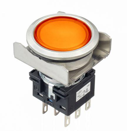 This is Amber Round Push Button Switch manufactured by Idec. The manufacturer part number is LBW6ML-A1RT64WA.