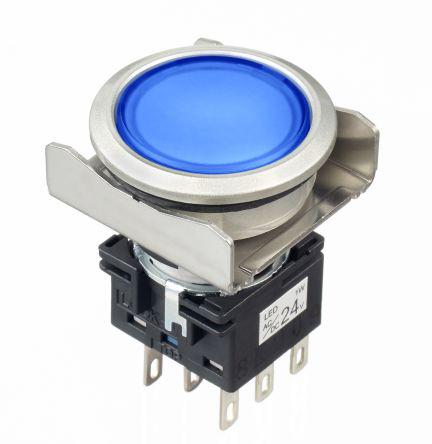 This is Blue Round Push Button Switch manufactured by Idec. The manufacturer part number is LBW6ML-M1RT64WS.