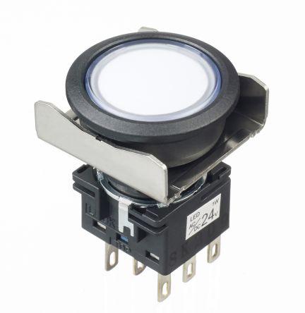 This is White Round Push Button Switch manufactured by Idec. The manufacturer part number is LBW6L-A1RT64PW.