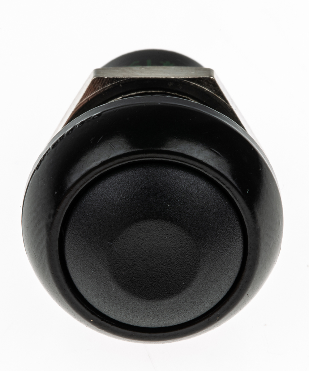 This is SP Off-On Miniature Push Button Switch IP67 Panel Mount manufactured by APEM. The manufacturer part number is IPR1SAD2. While it has an adorable black colour. The product is available in panel mount configuration. It is IP rated with ip67. The rated contact current is 5 a @ 28 v dc. The panel has a 13.6mm cut-out diameter. Moreover, the product has a nominal 12/48/72v dc voltage rating. This pushbutton has a dome style pushbutton and is easy to use. The contact is equipped with spst configuration. The casing is finished with an adorable black colour. The product has an assigned ipr1sad2 manufacturer part number. It provides latching switch operation. The terminal is a solder type. The product is made from sturdy gold plated silver materials.