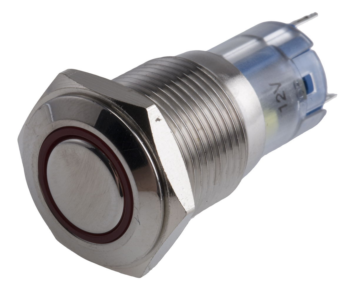 This is SPDT On-Momentary Push Button Switch IP65 IP67 16 (Dia.)mm Panel Mount Red LED 250V ac manufactured by RS Pro. The manufacturer part number is 811-8452. Illumination Option yes. The product is available in panel mount configuration. Moreover, the product has a nominal 250v ac voltage rating. The rated contact current is 3 a @ 250 v ac. The panel has a 16mm cut-out diameter. It is IP rated with ip65, ip67. This pushbutton has a round style pushbutton and is easy to use. The LED has an adorable red colour. While it has an adorable silver colour. The product has an assigned av02l-b32-m3-fr-r-12v manufacturer part number. It provides momentary switch operation. Its contact AC voltage rating is about 250v . The terminal is a solder type. The contact is equipped with spdt configuration. The product is made from sturdy sliver alloy materials.