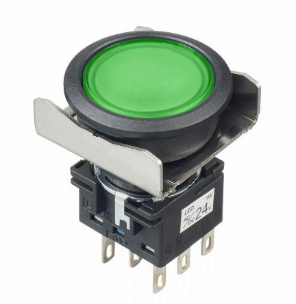This is Green Round Push Button Switch manufactured by Idec. The manufacturer part number is LBW6L-A1RT64WG.