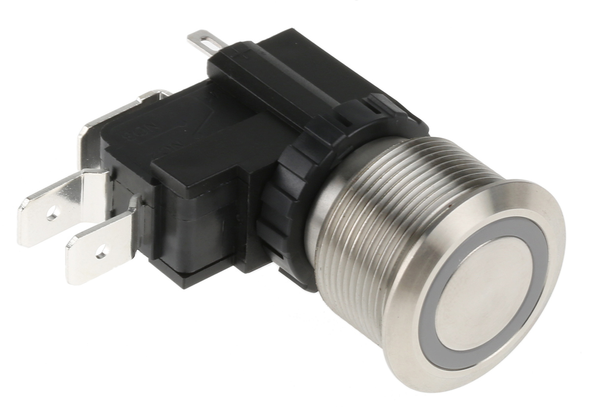 This is 26A SPDT + Momentary + Ring Moveable + W manufactured by RS Pro. The manufacturer part number is 175-8691. Illumination Option yes. The product is available in panel mount configuration. It is IP rated with ip67. The rated contact current is 16 a, 26 a. The panel has a 22.2mm cut-out diameter. Moreover, the product has a nominal 250 / 125v ac voltage rating. This pushbutton has a round style pushbutton and is easy to use. The LED has an adorable white colour. The casing is finished with an adorable natural colour. The contact is equipped with spdt configuration. The product has an assigned mw22-a0f0e124-a3za manufacturer part number. It provides momentary switch operation. Its contact AC voltage rating is about 250 / 125v . The terminal is a quick connect type. The product is made from sturdy brass materials.