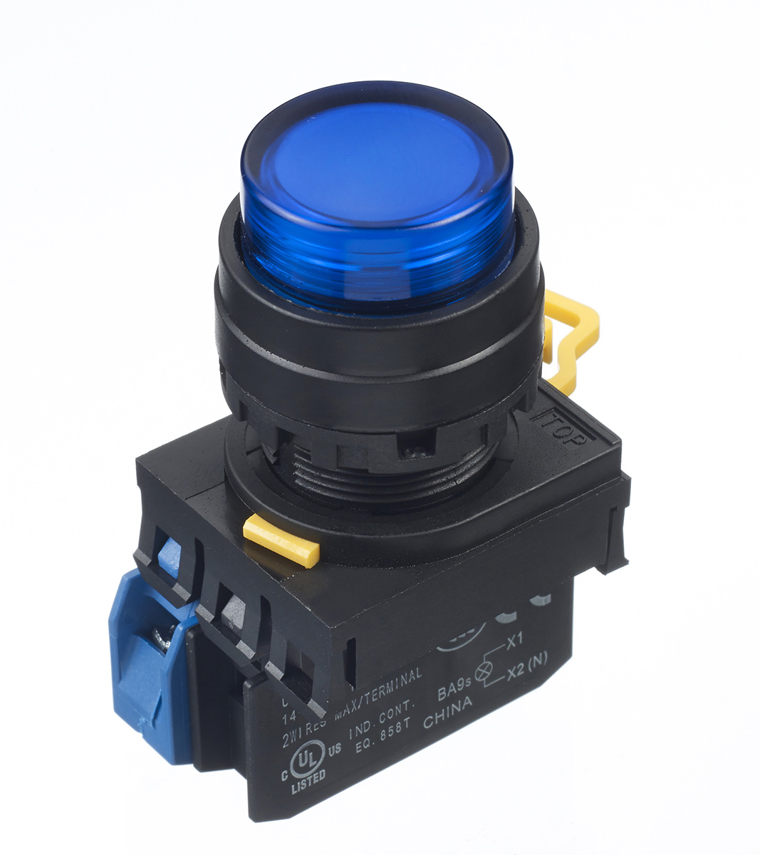 This is YW Illuminated Blue Push Button Complete Unit NO Momentary manufactured by Idec. The manufacturer part number is YW1L-M2E10Q4S. It has 24v maximum DC voltage. A bespoke product carries 24v of maximum AC voltage. Illumination Option yes. The product is available in panel mount configuration. It is IP rated with ip65. The product yw, is a highly preferred choice for users. Whereas, the minimum operating temperature of the product is -20°c. This pushbutton has a round style pushbutton and is easy to use. Pushbutton is manufactured from highly rugged and reliable plastic material. The product's body is nicely designed from plastic materials. While it has an adorable blue colour. The panel has a 22mm cut-out diameter. The product has an assigned yw1l-m2e10q4s manufacturer part number. The contact is equipped with spst configuration. It has a maximum operating temperature of +55°c. The terminal is a screw type. In addition, the push button diameter of the product is about 23.6mm .