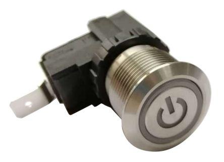 This is 26A SPST-NC + Momentary + Ring with Powe manufactured by RS Pro. The manufacturer part number is 175-8059. It is designed with an adorable flat shape actuator . Illumination Option yes. The product is available in panel mount configuration. It is IP rated with ip67. The rated contact current is 16 a, 26 a. The panel has a 19.1mm cut-out diameter. Moreover, the product has a nominal 250 / 125v ac voltage rating. The LED has an adorable white colour. The casing is finished with an adorable natural colour. The product carries push button actuator. The contact is equipped with single pole single throw (spst) configuration. The terminal is a quick connect type. The panel cut out size includes 19.1 (dia.)mm. Its contact AC voltage rating is about 250 / 125v . Legend Information: power symbol. It provides momentary switch operation.