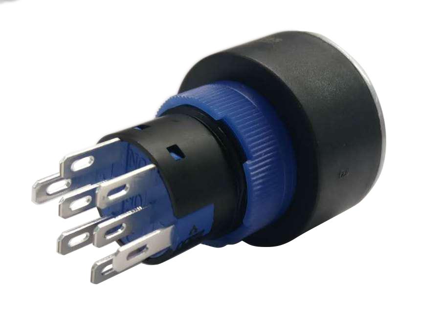 This is 2 Poles + Lock + Yellow LED 220V manufactured by RS Pro. The manufacturer part number is 175-8387. It is designed with an adorable flat shape actuator . The actuator has an adorable silver colour. Illumination Option yes. The product is available in panel mount configuration. It is IP rated with ip65. The rated contact current is 3 a, 5 a. The panel has a 22.2mm cut-out diameter. Moreover, the product has a nominal 250v ac voltage rating. The LED has an adorable yellow colour. The casing is finished with an adorable silver colour. The product carries push button actuator. The terminal is a solder type. The contact is equipped with double pole double throw (dpdt) configuration. Its contact AC voltage rating is about 250v . Legend Information: power symbol. The panel cut out size includes 22.2 (dia.)mm.