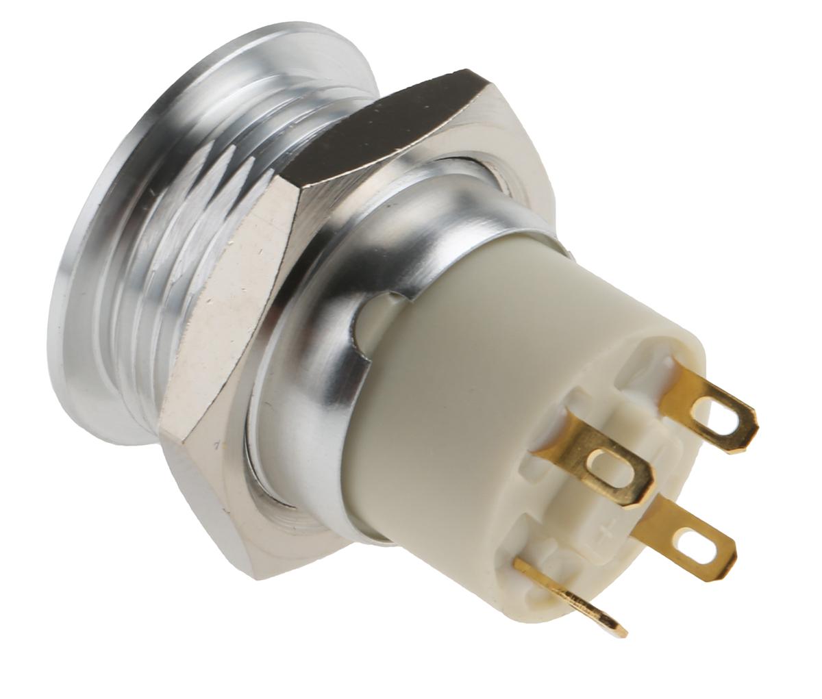 This is Round Button with Ring + Red&Blue Dual L manufactured by RS Pro. The manufacturer part number is 175-9253. Illumination Option yes. The product is available in panel mount configuration. It is IP rated with ip67. The rated contact current is 2 a. The panel has a 16mm cut-out diameter. Moreover, the product has a nominal 36v dc voltage rating. It has about 36v contact DC voltage rating . This pushbutton has a round style pushbutton and is easy to use. The LED has an adorable blue, red colour. The casing is finished with an adorable natural colour. The contact is equipped with spst configuration. The product has an assigned mpb16l-care-37-jr-3v manufacturer part number. It provides latching switch operation. The terminal is a solder type. The product is made from sturdy brass, coin silver materials.