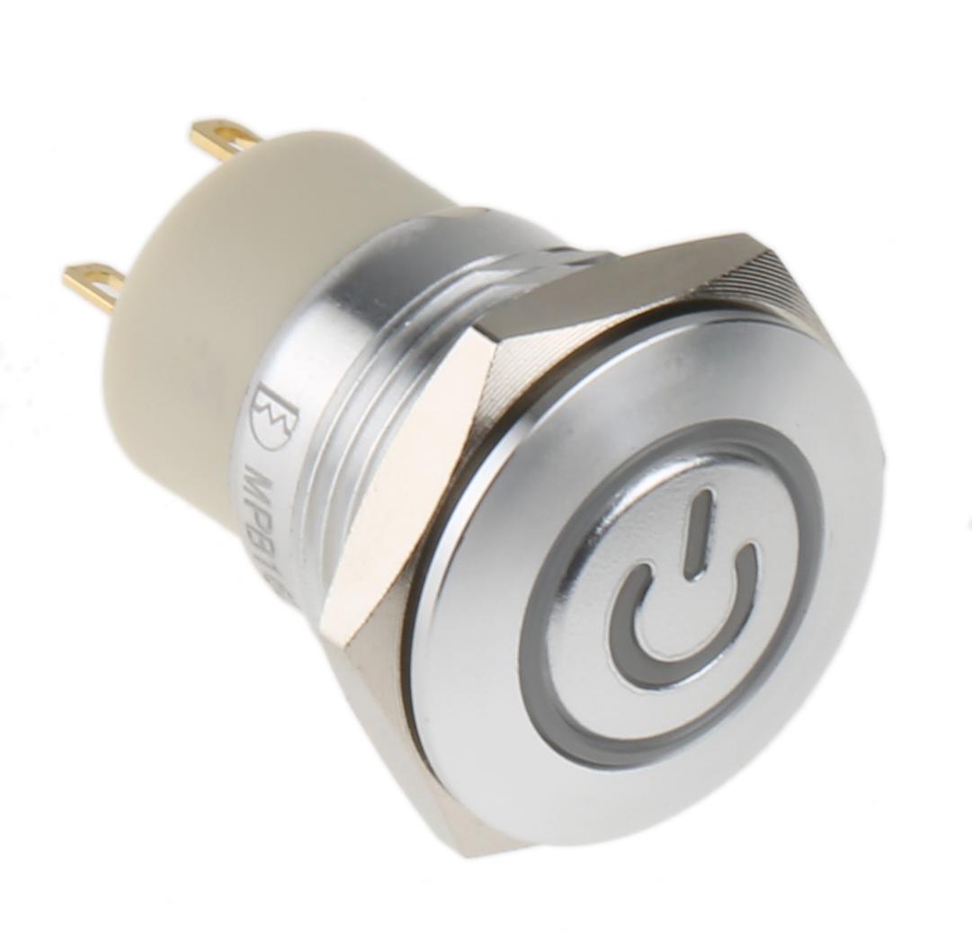 This is Round Button with Power Logo + Yellow LE manufactured by RS Pro. The manufacturer part number is 175-9739. Illumination Option yes. The product is available in panel mount configuration. It is IP rated with ip67. The rated contact current is 2 a. The panel has a 16mm cut-out diameter. Moreover, the product has a nominal 36v dc voltage rating. It has about 36v contact DC voltage rating . This pushbutton has a round style pushbutton and is easy to use. The LED has an adorable yellow colour. The casing is finished with an adorable natural colour. The contact is equipped with spst configuration. The terminal is a solder type. The product has an assigned mpb16l-carp-05-jr-24v manufacturer part number. It provides latching switch operation. Legend Information: power symbol. The product is made from sturdy brass, coin silver materials.