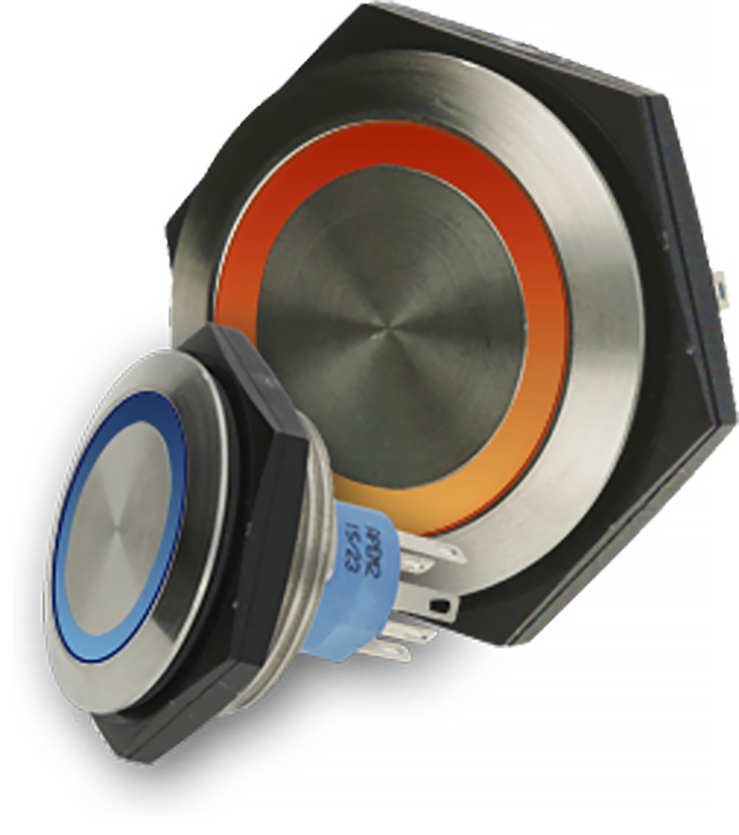 This is SPST Momentary Push Button Light Switch IP67 30.2 (Dia.)mm Panel Mount Blue LED 30V dc manufactured by APEM. The manufacturer part number is AV51022000074BK. Illumination Option yes. The product is available in panel mount configuration. It is IP rated with ip67. The rated contact current is 1 a. The panel has a 30.2mm cut-out diameter. Moreover, the product has a nominal 30v dc voltage rating. It has about 30v contact DC voltage rating . This pushbutton has a round style pushbutton and is easy to use. The LED has an adorable blue colour. While it has an adorable silver colour. The contact is equipped with spst configuration. The product has an assigned av51022000074bk manufacturer part number. It provides momentary switch operation. The terminal is a solder/quick connect type. The product is made from sturdy silver materials.