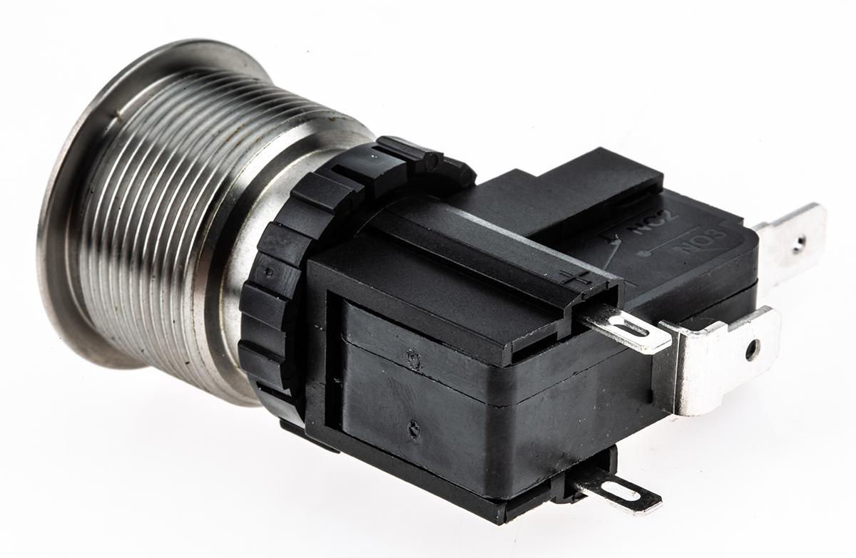 This is 16A SPST-NO + Momentary + Ring with Powe manufactured by RS Pro. The manufacturer part number is 175-8179. Illumination Option yes. The product is available in panel mount configuration. It is IP rated with ip67. The rated contact current is 16 a, 26 a. The panel has a 22.2mm cut-out diameter. Moreover, the product has a nominal 250 / 125v ac voltage rating. This pushbutton has a flat style pushbutton and is easy to use. The LED has an adorable white colour. The casing is finished with an adorable natural colour. The contact is equipped with spst configuration. The terminal is a quick connect type. The product has an assigned mw22-a0f0l124-a1tb manufacturer part number. It provides momentary switch operation. Its contact AC voltage rating is about 250 / 125v . Legend Information: power symbol. The product is made from sturdy brass materials.