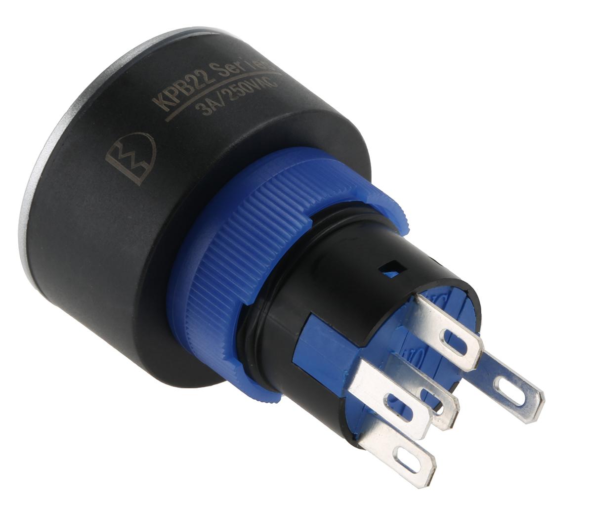 This is 1 Pole + Lock + Yellow LED 220V manufactured by RS Pro. The manufacturer part number is 175-8317. It is designed with an adorable flat shape actuator . The actuator has an adorable silver colour. Illumination Option yes. The product is available in panel mount configuration. It is IP rated with ip65. The rated contact current is 3 a, 5 a. The panel has a 22.2mm cut-out diameter. Moreover, the product has a nominal 250v ac voltage rating. The LED has an adorable yellow colour. The casing is finished with an adorable silver colour. The product carries push button actuator. The terminal is a solder type. The contact is equipped with single pole double throw (spdt) configuration. Its contact AC voltage rating is about 250v . Legend Information: power symbol. The panel cut out size includes 22.2 (dia.)mm.