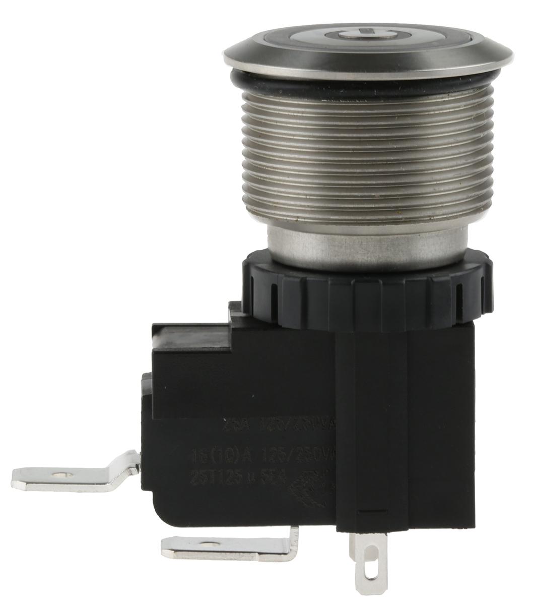 This is 26A SPST-NO + Momentary + Ring with Powe manufactured by RS Pro. The manufacturer part number is 175-8175. Illumination Option yes. The product is available in panel mount configuration. It is IP rated with ip67. The rated contact current is 16 a, 26 a. The panel has a 22.2mm cut-out diameter. Moreover, the product has a nominal 250 / 125v ac voltage rating. This pushbutton has a flat style pushbutton and is easy to use. The LED has an adorable white colour. The casing is finished with an adorable natural colour. The contact is equipped with spst configuration. The terminal is a quick connect type. The product has an assigned mw22-a0f0l124-a3ta manufacturer part number. It provides momentary switch operation. Its contact AC voltage rating is about 250 / 125v . Legend Information: power symbol. The product is made from sturdy brass materials.