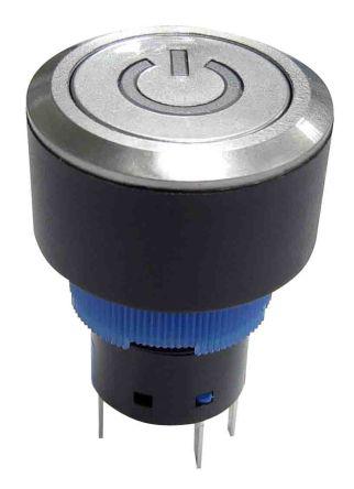 This is 1 Pole + Momentary + Without LED manufactured by RS Pro. The manufacturer part number is 175-8265. It is designed with an adorable flat shape actuator . The actuator has an adorable silver colour. Illumination Option yes. The product is available in panel mount configuration. It is IP rated with ip65. The rated contact current is 3 a, 5 a. The panel has a 22.2mm cut-out diameter. Moreover, the product has a nominal 250v ac voltage rating. The terminal is a solder type. The casing is finished with an adorable silver colour. The product carries push button actuator. The contact is equipped with single pole double throw (spdt) configuration. The panel cut out size includes 22.2 (dia.)mm. Its contact AC voltage rating is about 250v . Legend Information: power symbol. It provides momentary switch operation.