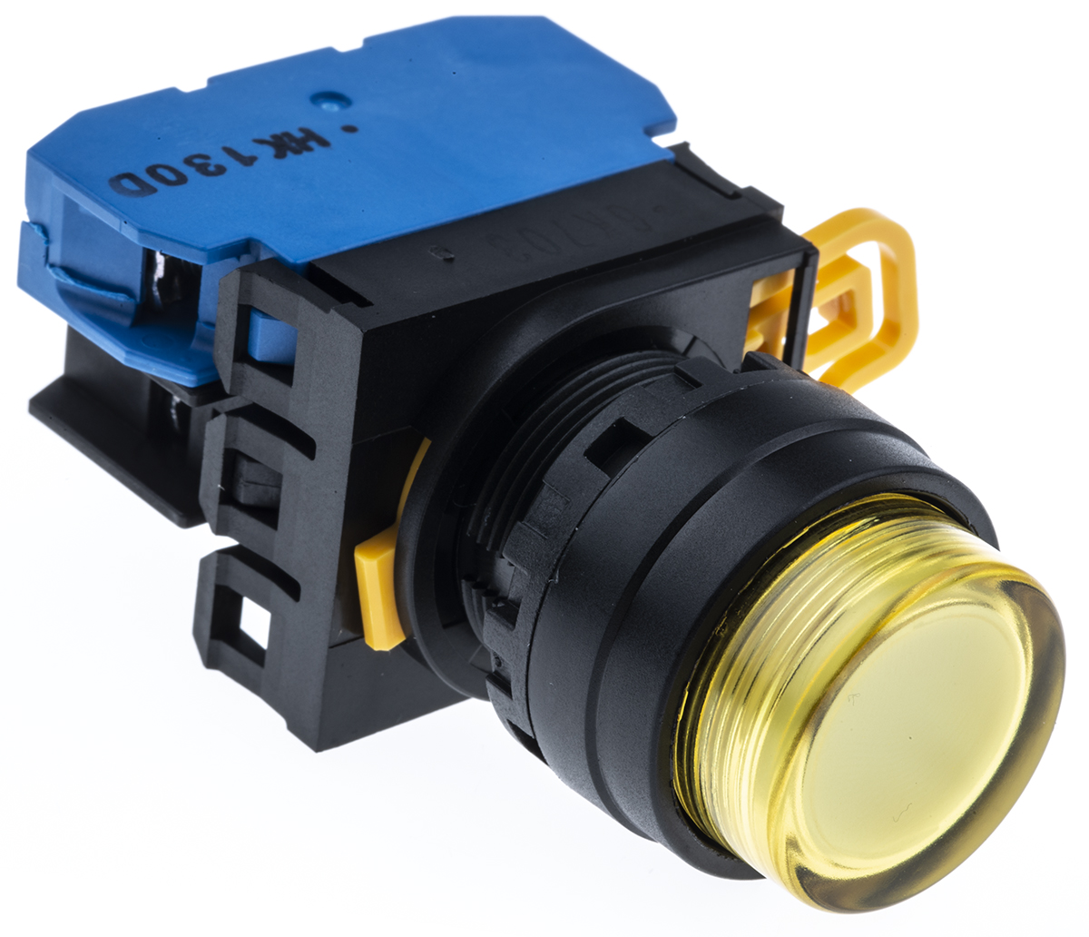 This is YW Illuminated Yellow Push Button Complete Unit NO Momentary manufactured by Idec. The manufacturer part number is YW1L-M2E10QM3Y. The product is certified with no hazardous area certification. In addition, the push button diameter of the product is about 23.6mm . Illumination Option yes. It is IP rated with ip65. Whereas, the minimum operating temperature of the product is -20°c. The product yw, is a highly preferred choice for users. The contact is equipped with spst configuration. It includes a push button of round shape . Pushbutton is manufactured from highly rugged and reliable plastic material. The push button has momentary actuation mechanism. The product's body is nicely designed from plastic materials. This pushbutton has a round style pushbutton and is easy to use. While it has an adorable yellow colour. Whereas its cut-out diameter is 22mm. push button complete unit is a versatile product designed to provide user-defined applications. It has a maximum operating temperature of 55°c. The terminal is a screw type. It has a panel type mount .