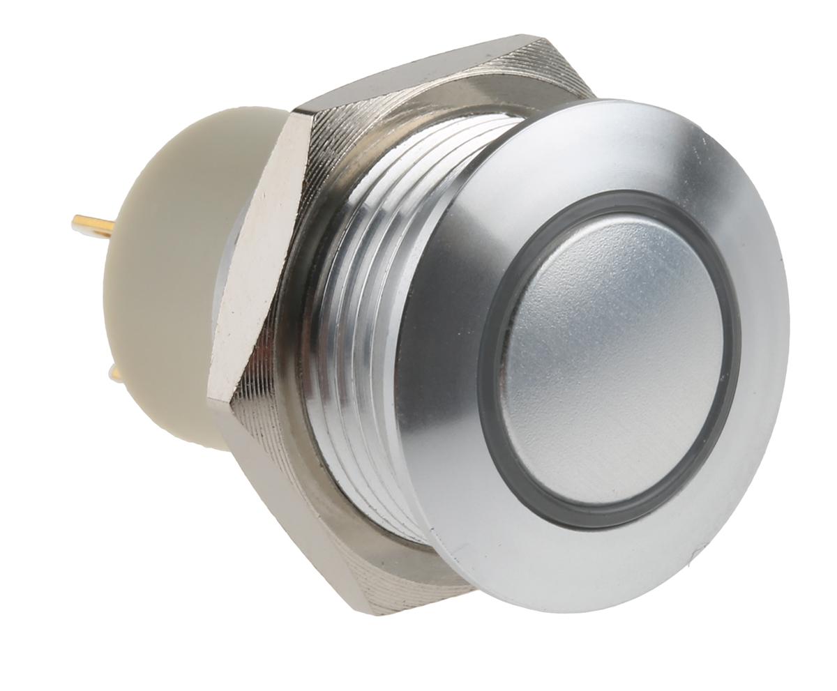 This is Lock Push Button Switch IP67 16 Dia.mm Panel Mount Blue Red LED 36V dc manufactured by RS Pro. The manufacturer part number is 175-9690. Illumination Option yes. The product is available in panel mount configuration. It is IP rated with ip67. The rated contact current is 2 a. The panel has a 16mm cut-out diameter. Moreover, the product has a nominal 36v dc voltage rating. It has about 36v contact DC voltage rating . This pushbutton has a round style pushbutton and is easy to use. The LED has an adorable blue, red colour. The casing is finished with an adorable natural colour. The contact is equipped with spst configuration. The product has an assigned mpb16l-care-37-jr-3v manufacturer part number. It provides latching switch operation. The terminal is a solder type. The product is made from sturdy brass, coin silver materials.
