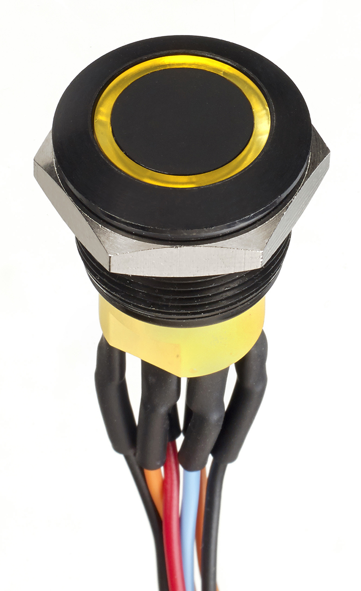 This is Double Pole Single Throw (DPST) Momentary Push Button Switch IP67 19.2 (Dia.)mm Panel Mount Yellow LED 30V dc manufactured by APEM. The manufacturer part number is AV9512F1020870K. Illumination Option yes. The product is available in panel mount configuration. Moreover, the product has a nominal 30v dc voltage rating. The rated contact current is 1 a. The panel has a 19.2mm cut-out diameter. It is IP rated with ip67. It has about 30v contact DC voltage rating . The LED has an adorable yellow colour. The product has an assigned av9512f1020870k manufacturer part number. It provides momentary switch operation. The terminal is a wire lead type. The contact is equipped with dpdt configuration. The product is made from sturdy sliver materials.