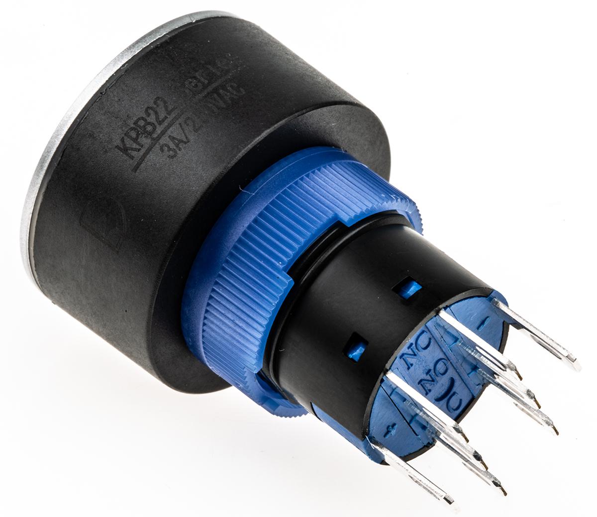 This is 2NO/2NC Momentary Push Button Switch IP65 22.2 Dia.mm Panel Mount Yellow LED Power Symbol 250V ac manufactured by RS Pro. The manufacturer part number is 175-8397. Illumination Option yes. The product is available in panel mount configuration. It is IP rated with ip65. The rated contact current is 3 a, 5 a. The panel has a 22.2mm cut-out diameter. Moreover, the product has a nominal 250v ac voltage rating. This pushbutton has a flat style pushbutton and is easy to use. The LED has an adorable yellow colour. The casing is finished with an adorable silver colour. While it has an adorable silver colour. The contact is equipped with dpdt configuration. The terminal is a solder type. The product has an assigned kpb22-88p1-f20-524-jq manufacturer part number. It provides momentary switch operation. Its contact AC voltage rating is about 250v . Legend Information: power symbol. The product is made from sturdy brass materials.
