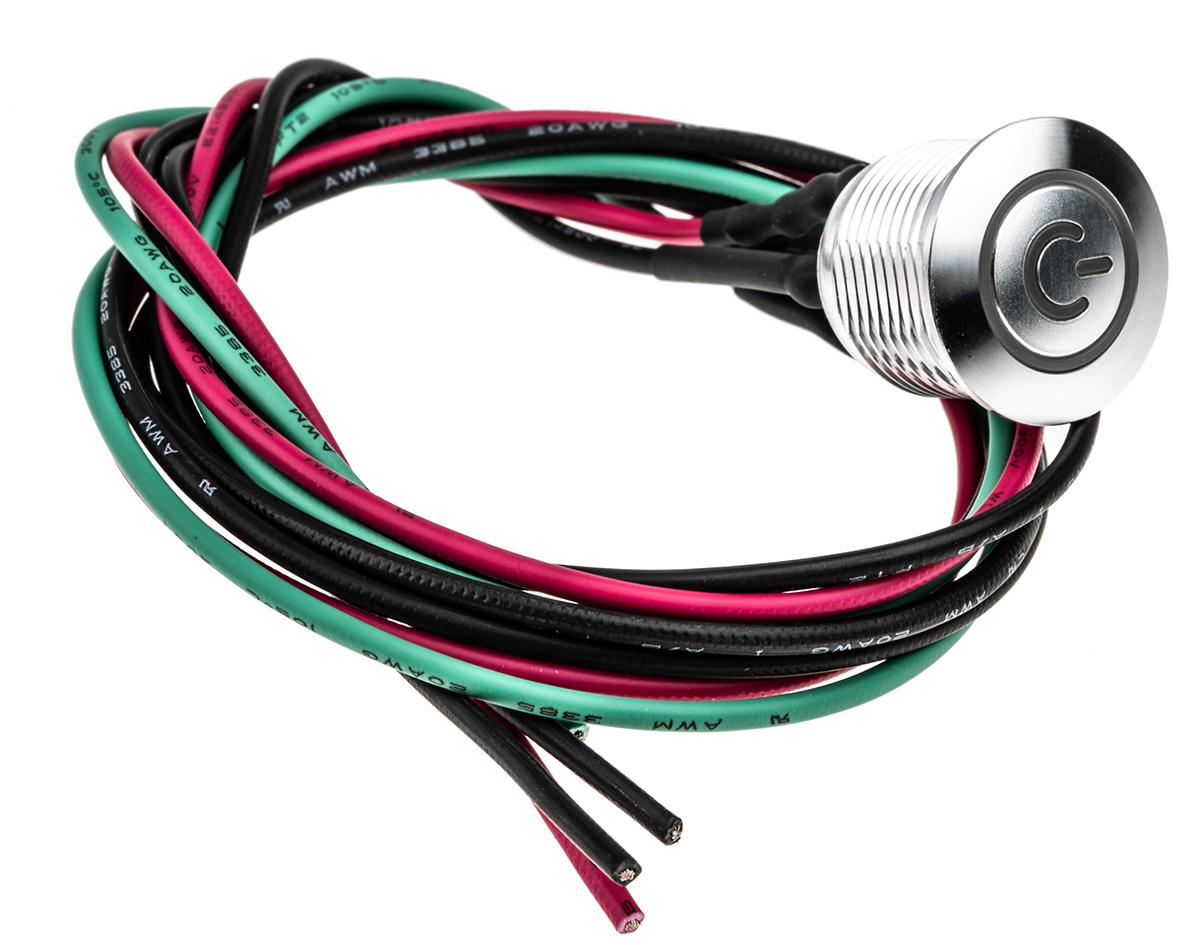 This is Push Button Switch IP67 16 Dia.mm Panel Mount Blue LED Power Symbol 36V dc manufactured by RS Pro. The manufacturer part number is 175-9445. Illumination Option yes. The product is available in panel mount configuration. It is IP rated with ip67. The rated contact current is 2 a. The panel has a 16mm cut-out diameter. Moreover, the product has a nominal 36v dc voltage rating. It has about 36v contact DC voltage rating . This pushbutton has a round style pushbutton and is easy to use. The LED has an adorable blue colour. The casing is finished with an adorable natural colour. While it has an adorable silver colour. The contact is equipped with spst configuration. The terminal is a wire lead type. The product has an assigned mpb16-carp-7-t1r-6v manufacturer part number. It provides momentary switch operation. Legend Information: power symbol. The product is made from sturdy silver alloy materials.