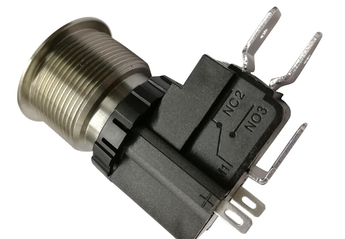 This is Single Pole Double Throw (SPDT) Momentary Push Button Switch IP67 22.2 Dia.mm Panel Mount White LED Power Symbol manufactured by RS Pro. The manufacturer part number is 175-8174. It is designed with an adorable flat shape actuator . Illumination Option yes. The product is available in panel mount configuration. It is IP rated with ip67. The rated contact current is 16 a, 26 a. The panel has a 22.2mm cut-out diameter. Moreover, the product has a nominal 250 / 125v ac voltage rating. The LED has an adorable white colour. The casing is finished with an adorable natural colour. The product carries push button actuator. The contact is equipped with single pole double throw (spdt) configuration. The terminal is a quick connect type. The panel cut out size includes 22.2 (dia.)mm. Its contact AC voltage rating is about 250 / 125v . Legend Information: power symbol. It provides momentary switch operation.