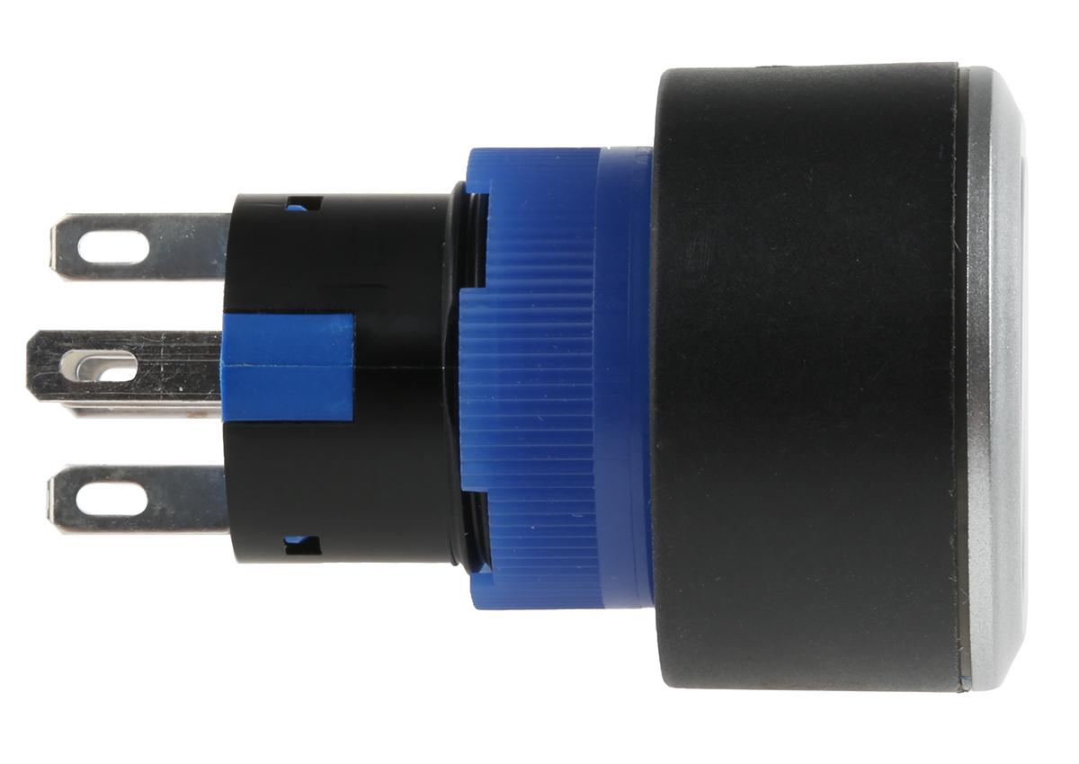 This is Single Pole Double Throw (SPDT) Lock Push Button Switch IP65 22.2 Dia.mm Panel Mount Red LED 250V ac manufactured by RS Pro. The manufacturer part number is 175-8286. Illumination Option yes. The product is available in panel mount configuration. It is IP rated with ip65. The rated contact current is 3 a, 5 a. The panel has a 22.2mm cut-out diameter. Moreover, the product has a nominal 250v ac voltage rating. This pushbutton has a flat style pushbutton and is easy to use. The LED has an adorable red colour. The casing is finished with an adorable silver colour. While it has an adorable transparent colour. The product has an assigned kpb22-8000-f11-324-jq manufacturer part number. The contact is equipped with spdt configuration. Its contact AC voltage rating is about 250v . The terminal is a solder type. The product is made from sturdy brass materials.