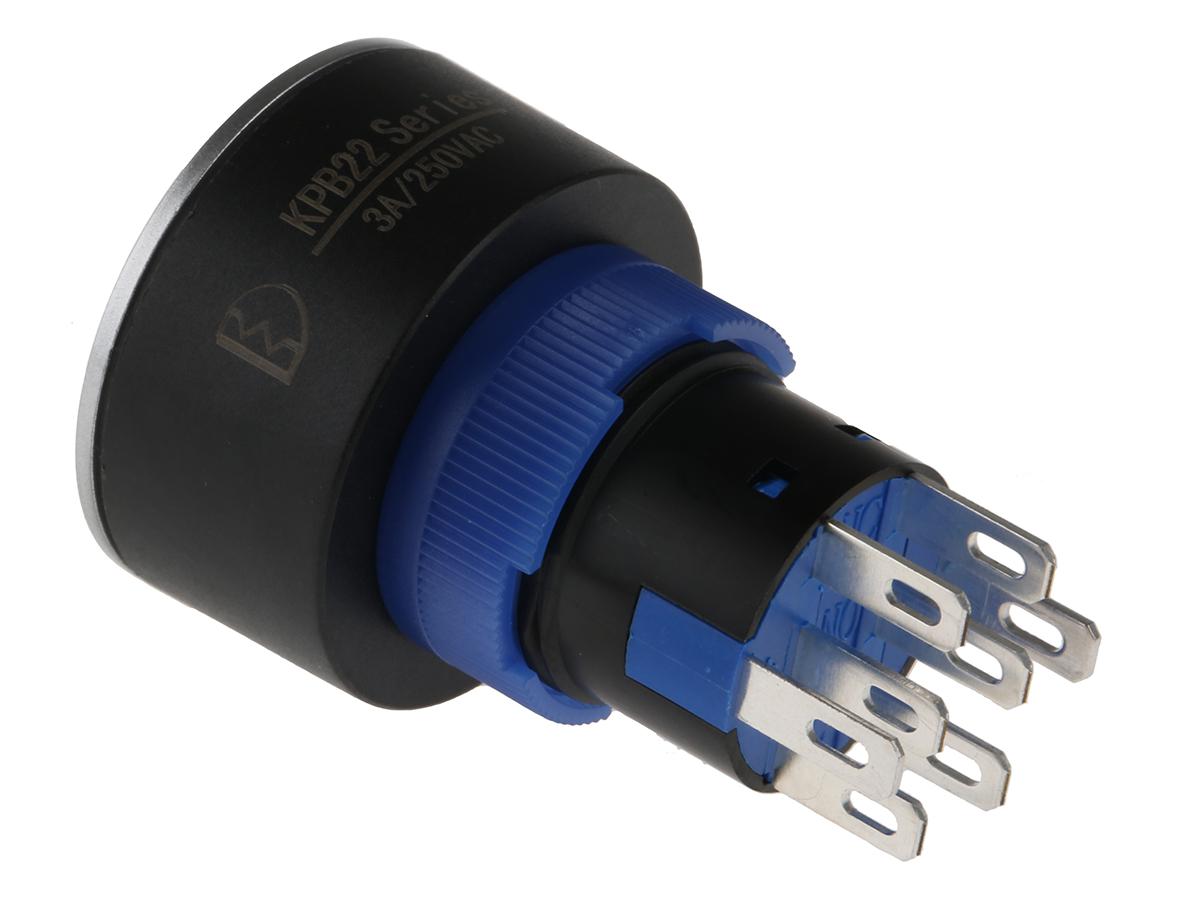 This is 2NO/2NC Momentary Push Button Switch IP65 22.2 Dia.mm Panel Mount Green LED Power Symbol 250V ac manufactured by RS Pro. The manufacturer part number is 175-8410. Illumination Option yes. The product is available in panel mount configuration. It is IP rated with ip65. The rated contact current is 3 a, 5 a. The panel has a 22.2mm cut-out diameter. Moreover, the product has a nominal 250v ac voltage rating. This pushbutton has a flat style pushbutton and is easy to use. The LED has an adorable green colour. The casing is finished with an adorable silver colour. While it has an adorable silver colour. The contact is equipped with dpdt configuration. The terminal is a solder type. The product has an assigned kpb22-88p1-f20-6220-jq manufacturer part number. It provides momentary switch operation. Its contact AC voltage rating is about 250v . Legend Information: power symbol. The product is made from sturdy brass materials.