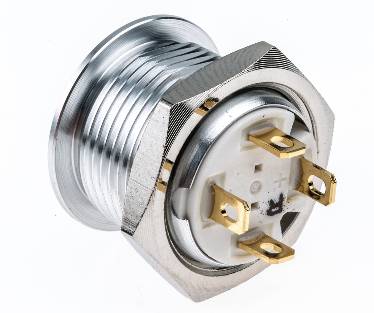 This is Push Button Switch IP67 16 Dia.mm Panel Mount Red LED Power Symbol 36V dc manufactured by RS Pro. The manufacturer part number is 175-8496. Illumination Option yes. The product is available in panel mount configuration. It is IP rated with ip67. The rated contact current is 2 a. The panel has a 16mm cut-out diameter. Moreover, the product has a nominal 36v dc voltage rating. It has about 36v contact DC voltage rating . This pushbutton has a round style pushbutton and is easy to use. The LED has an adorable red colour. The casing is finished with an adorable natural colour. While it has an adorable silver colour. The contact is equipped with spst configuration. The terminal is a solder type. The product has an assigned mpb16-carp-3-jr-12v manufacturer part number. It provides momentary switch operation. Legend Information: power symbol. The product is made from sturdy silver alloy materials.