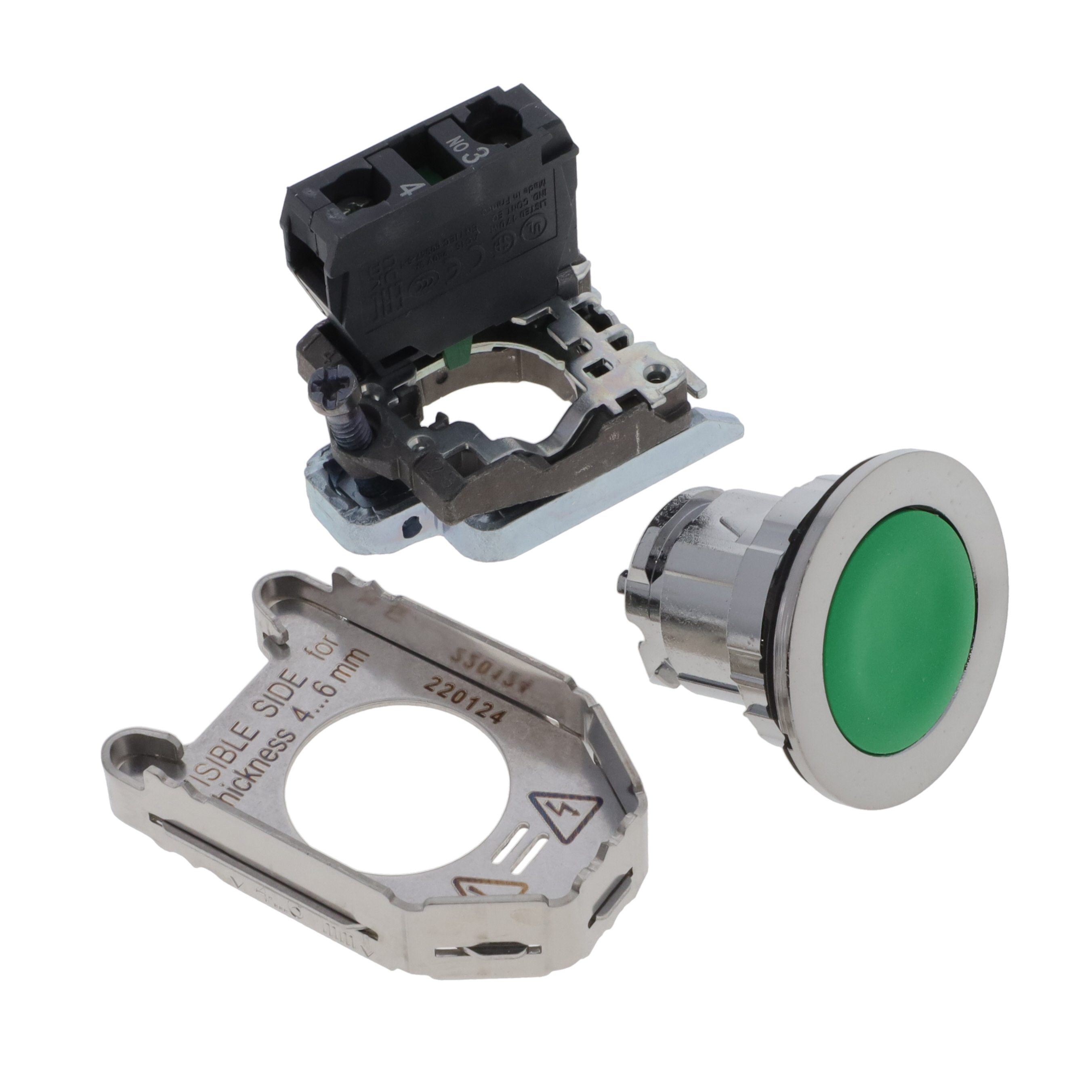 The Schneider Electric XB4FA31 is a flush-mount green pushbutton with 1 normally open (NO) contact and a single-pole, single-throw (SPST) configuration. Its sleek format allows for seamless integration into control panels and equipment.