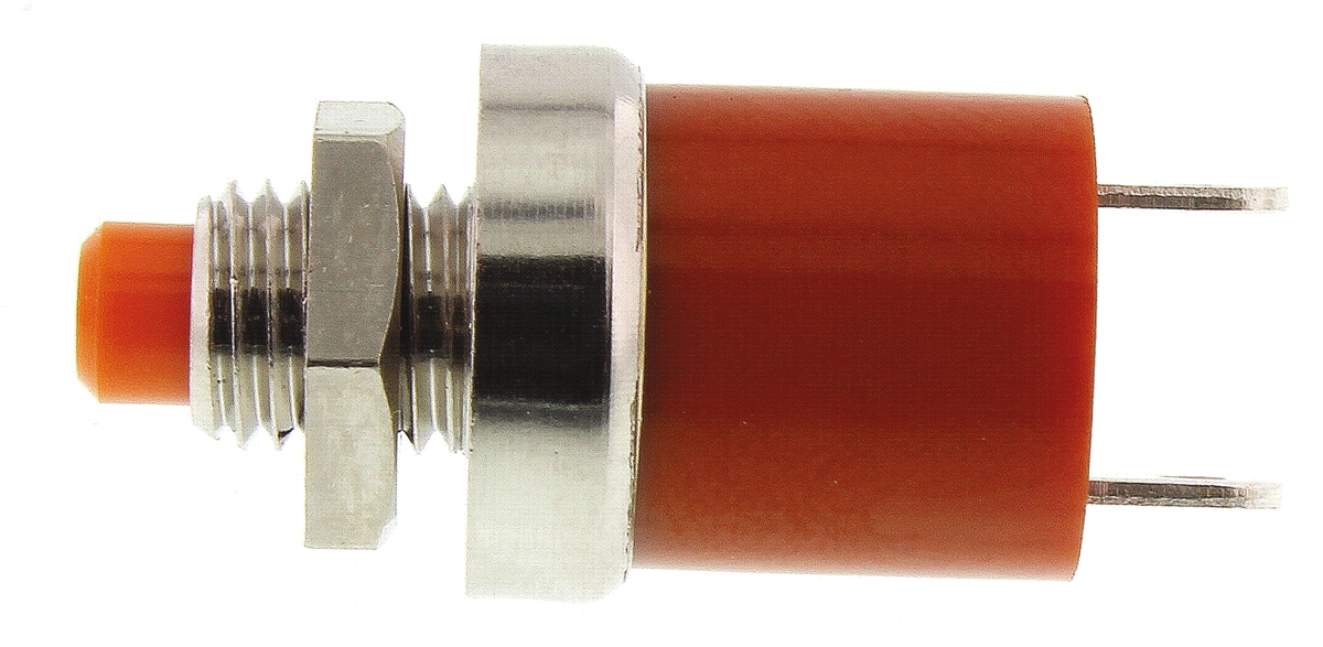 This is Single Pole Double Throw (SPDT) Momentary Miniature Push Button Switch 10.5 (Dia.)mm Panel Mount 250V manufactured by KNITTER-SWITCH. The manufacturer part number is MSP 103 C. Illumination Option no. The product is available in panel mount configuration. Moreover, the product has a nominal 250v ac voltage rating. The rated contact current is 3 a @ 125 v ac. The panel has a 10.5mm cut-out diameter. The contact is equipped with spdt configuration. While it has an adorable orange colour. The product has an assigned msp 103 c manufacturer part number. It provides momentary switch operation. The terminal is a solder type. The product is made from sturdy gold plated coin silver materials.