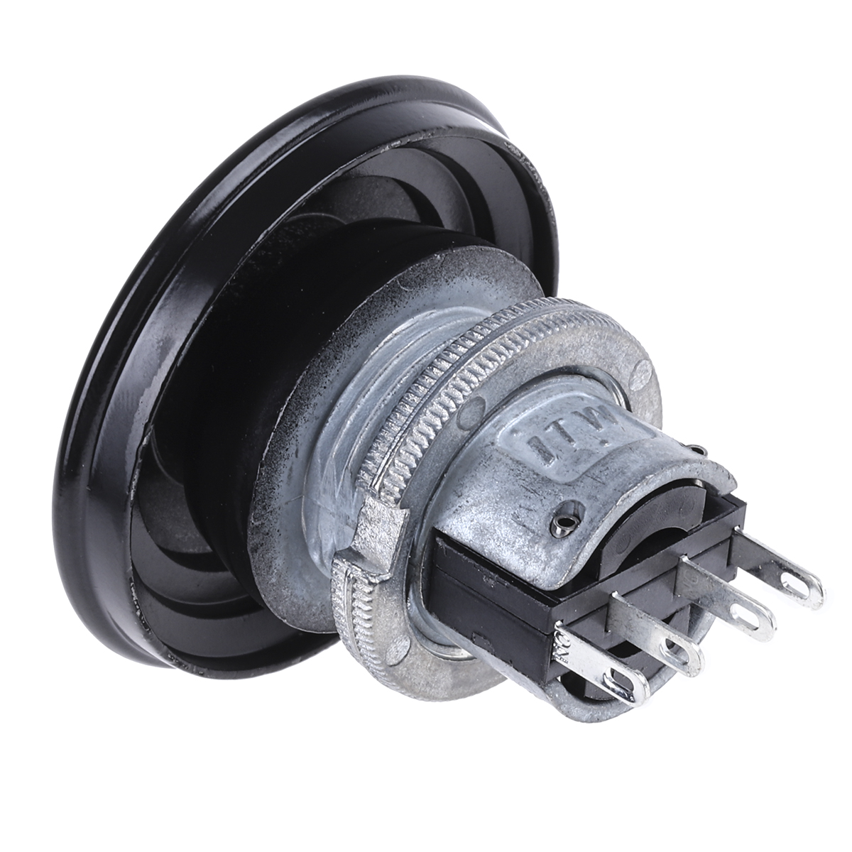 This is 76-94 Single Pole Double Throw (SPDT) Momentary Clear LED Push Button Switch IP67 22 (Dia.)mm Panel manufactured by ITW Switches. The manufacturer part number is 76-9440/439088B. Illumination Option no. The product is available in panel mount configuration. It is IP rated with ip67. The rated contact current is 10 a @ 250 v ac. The product 76-94, is a highly preferred choice for users. Whereas, the minimum operating temperature of the product is -40°c. Moreover, the product has a nominal 250v ac voltage rating. This pushbutton has a mushroom style pushbutton and is easy to use. The LED has an adorable clear colour. The product has -40 → +125°c of operating temperature range. It has a maximum operating temperature of +125°c. While it has an adorable black colour. The panel has a 22mm cut-out diameter. The contact is equipped with spdt configuration. The product has an assigned 76-9440/439088b manufacturer part number. It provides momentary switch operation. Its contact AC voltage rating is about 250v . The terminal is a solder type. The product is made from sturdy fine silver materials.