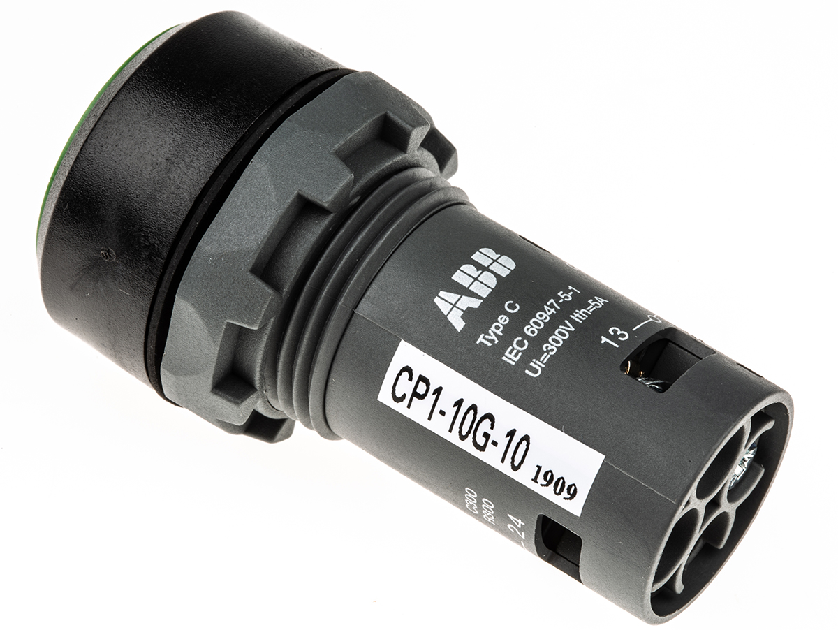 This is Compact Non-illuminated Green Round NO 22mm Momentary Screw manufactured by ABB. The manufacturer part number is 1SFA619100R1012 CP1-10G-10. It has 250v maximum DC voltage. A bespoke product carries 240v of maximum AC voltage. Illumination Option no. The product is available in panel mount configuration. It is IP rated with ip69k. Whereas, the minimum operating temperature of the product is -25°c. The product compact, is a highly preferred choice for users. Moreover, the product has a nominal 300v voltage rating. This pushbutton has a round style pushbutton and is easy to use. Pushbutton is manufactured from highly rugged and reliable pc material. The casing is finished with an adorable black colour. While it has an adorable green colour. The panel has a 22mm cut-out diameter. The product has an assigned 1sfa619100r1012 cp1-10g-10 manufacturer part number. The contact is equipped with spst configuration. It has a maximum operating temperature of +70°c. The terminal is a screw type. It provides momentary switch operation.