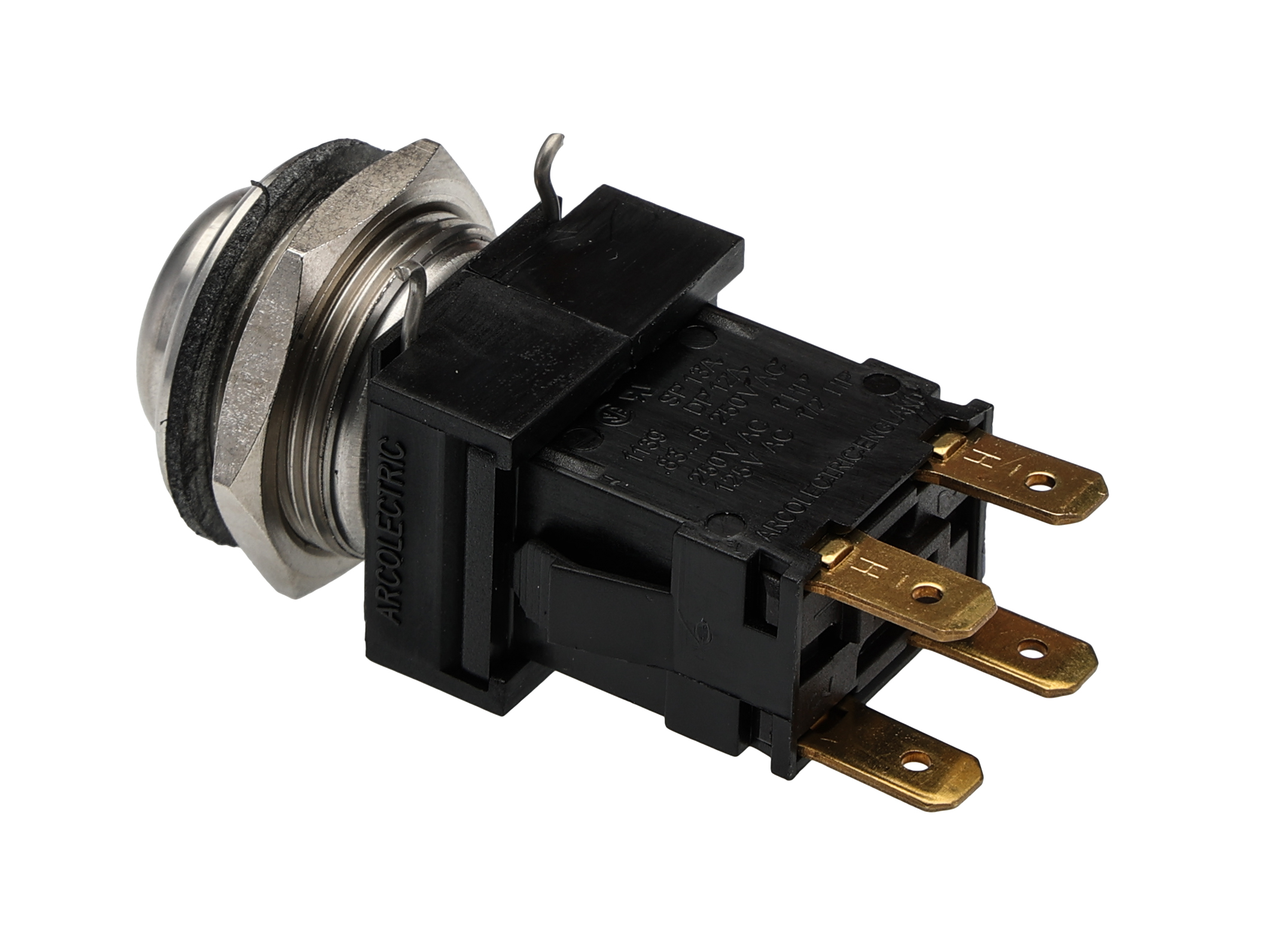 This is Latching Push Button Switch Panel Mount DPDT 19.2mm Cutout 250V ac IP66 manufactured by Arcolectric (Bulgin) Ltd. The manufacturer part number is H8350RPAAA. A bespoke product carries 250v ac of maximum AC voltage. Illumination Option no. The product is available in panel mount configuration. It is IP rated with ip66. The rated contact current is 16 a. The product 8300, is a highly preferred choice for users. Moreover, the product has a nominal 250v ac voltage rating. This pushbutton has a rectangular style pushbutton and is easy to use. The terminal is a tab type. Its panel cut out is 12.9mm wide . The panel has a 19.2mm cut-out diameter. The contact is equipped with dpdt configuration. The product has an assigned h8350rpaaa manufacturer part number. Its panel cut out is 19.8mm in height . Its contact AC voltage rating is about 250v . Legend Information: (blank). It provides latching switch operation.