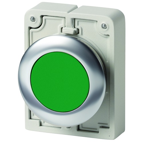 This is Series Push Button Switch Momentary Panel Mount 30.5mm Cutout IP66 IP67 IP69 manufactured by Eaton. The manufacturer part number is 188087 M30I-FD-G. Illumination Option no. It is IP rated with ip66, ip67, ip69. The product moeller, is a highly preferred choice for users. Whereas, the minimum operating temperature of the product is -25°c. It includes a push button of flat shape . Pushbutton is manufactured from highly rugged and reliable metal material. The product's body is nicely designed from metal materials. This pushbutton has a round style pushbutton and is easy to use. While it has an adorable green colour. Whereas its cut-out diameter is 30.5mm. push button switch is a versatile product designed to provide user-defined applications. It has a maximum operating temperature of 70°c. The push button has momentary actuation mechanism. In addition, the push button diameter of the product is about 30.5mm .