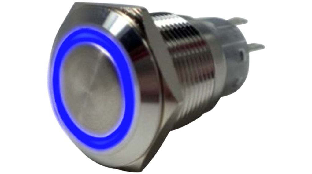 This is 210 Series Illuminated Vandal Proof Push Button Switch On-(On) Panel Mount 19mm Cutout 1NC 1NO Blue LED manufactured by RND. The manufacturer part number is RND 210-00401. Illumination Option yes. The product is available in panel mount configuration. It is IP rated with ip67. The product rnd 210, is a highly preferred choice for users. Moreover, the product has a nominal 250v ac voltage rating. The LED has an adorable blue colour. While it has an adorable silver colour. The panel has a 19mm cut-out diameter. The product has an assigned rnd 210-00401 manufacturer part number. The contact is equipped with 1nc, 1no configuration. It provides on-(on) switch operation.
