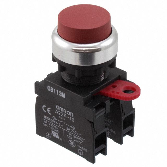 This is manufactured by Omron Automation and Safety. The manufacturer part number is A22R-TR-20M. It is assigned with possible HTSUS value of 8536.50.9035. The product exhibits 120 v of AC voltage rating. The product offers long-lasting services of 500,000 cycles. Moreover, it has screw terminal terminal style. The product has -20°c ~ 60°c operating temperature range. It also has a circular - 22.30mm dia dimensional features. The product also provide mechanical stability with 3,000,000 cycles. It comes in standard configuration. It is shipped in bulk package . It is designed as a off-mom switching function. Its typical moisture sensitivity level is 1 (unlimited). The actuator marking of the product corelates with no marking. It has an integral dpst-no circuit. Additionally, the product's output is 10a (ac). It is IP rated with ip65 - dust tight, oil and water resistant. The product is available in panel mount, front configuration. The product a22r, is a highly preferred choice for users. It is made from red. The product carries round, button actuator. The product is designated with the ear99 code number.