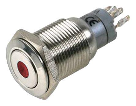 This is manufactured by Bulgin. The manufacturer part number is MP0045/1E1RD012. It is designed with an adorable plunger shape actuator . The actuator has an adorable silver colour. Illumination Option yes. The product is available in panel mount configuration. Moreover, the product has a nominal 50v voltage rating. The rated contact current is 3 a. The panel has a 16.2mm cut-out diameter. The contact is equipped with double pole double throw (dpdt) configuration. The LED has an adorable red colour. The product carries round actuator. The panel cut out size includes 16.2 (dia.)mm. The terminal is a solder type. It provides latching switch operation. It is assigned with possible HTSUS value of 8536.50.9033. The product is rohs3 compliant. The product offers long-lasting services of 30,000 cycles. Moreover, it has solder lug terminal style. The product has -20°c ~ 55°c operating temperature range. It also has a circular - 16.20mm dia dimensional features. The product also provide mechanical stability with 200,000 cycles. It comes in standard, illuminated configuration. It is made from silver. The product exhibits 250 v of AC voltage rating. In addition, it is reach unaffected. It is supplied with led, red illumination. It is designed as a on-on switching function. Its typical moisture sensitivity level is 1 (unlimited). The actuator marking of the product corelates with no marking. It has an integral dpdt circuit. It has a long 16 weeks standard lead time. Additionally, the product's output is 3a (ac). It is IP rated with ip40. The splendid features of the product include stainless steel. The product is available in panel mount, front configuration. In addition, bulk is the available packaging type of the product. The product carries round, button, flush actuator. The nominal illumination voltage of the product is 12 vdc. Moreover, it corresponds to mp0045, a base product number of the product. The product is designated with the ear99 code number.