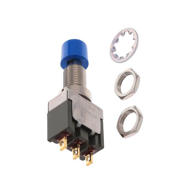 This is manufactured by NKK Switches. The manufacturer part number is MB2011SS1A01-BG. It is assigned with possible HTSUS value of 8536.50.9035. The product is rohs3 compliant. The product offers long-lasting services of 25,000 cycles. Moreover, it has solder lug terminal style. 30 v of DC voltage rating. The product has -30°c ~ 85°c operating temperature range. It also has a circular - 6.50mm dia dimensional features. The product also provide mechanical stability with 100,000 cycles. It comes in standard configuration. The product exhibits 125 v of AC voltage rating. It is shipped in bulk package . It is designed as a on-mom switching function. Its typical moisture sensitivity level is 1 (unlimited). The actuator marking of the product corelates with no marking. It has an integral spdt circuit. Additionally, the product's output is 6a (ac), 3a (dc). The splendid features of the product include epoxy sealed terminals. The product is available in panel mount, rear configuration. The product mb2000, is a highly preferred choice for users. It is made from blue. The product carries round, button actuator. Moreover, it corresponds to mb2011s, a base product number of the product. The product is designated with the ear99 code number.