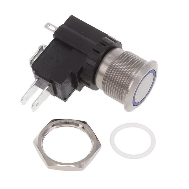 This is manufactured by TE Connectivity ALCOSWITCH Switches. The manufacturer part number is AVH19MSFE7121604. It is assigned with possible HTSUS value of 8536.50.9035. The product is rohs3 compliant. The product offers long-lasting services of 50,000 cycles. Moreover, it has quick connect - 0.187" (4.7mm) terminal style. The product has -25°c ~ 85°c operating temperature range. It also has a circular - 19.10mm dia dimensional features. The product also provide mechanical stability with 1,000,000 cycles. It comes in anti-vandal, illuminated configuration. It is made from silver. The product exhibits 125 v of AC voltage rating. In addition, it is reach affected. It is supplied with led, blue illumination. It is designed as a on-mom switching function. Its typical moisture sensitivity level is not applicable. The actuator marking of the product corelates with no marking. It has an integral spdt circuit. It has a long 20 weeks standard lead time. Additionally, the product's output is 16a (ac). It is IP rated with ip67 - dust tight, waterproof. The product is available in panel mount, front configuration. The product avh, is a highly preferred choice for users. In addition, box is the available packaging type of the product. The product carries round, button, flush actuator. The nominal illumination voltage of the product is 12 vdc. Moreover, it corresponds to avh19m, a base product number of the product. The product is designated with the ear99 code number.