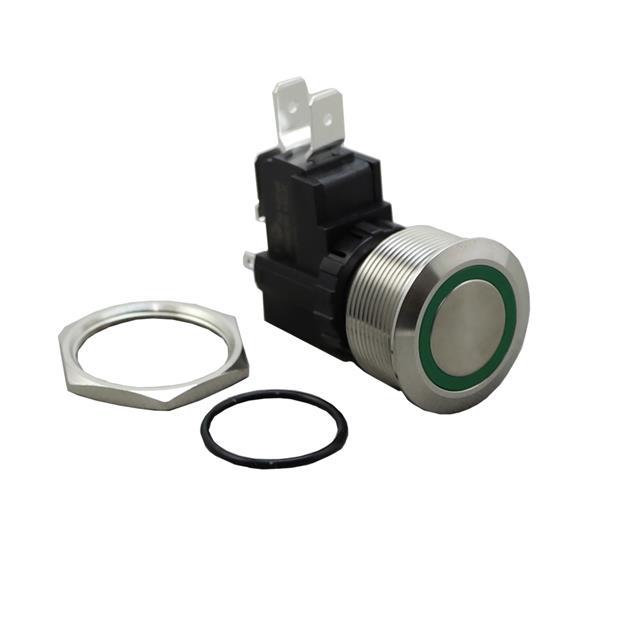 This is manufactured by TE Connectivity ALCOSWITCH Switches. The manufacturer part number is AVH25LSSFE6242604. It is assigned with possible HTSUS value of 8536.50.9035. The product is rohs3 compliant. The product offers long-lasting services of 10,000 cycles. Moreover, it has quick connect - 0.250" (6.3mm) terminal style. The product has -25°c ~ 85°c operating temperature range. It also has a circular - 25.20mm dia dimensional features. The product also provide mechanical stability with 500,000 cycles. It comes in anti-vandal, illuminated configuration. It is made from silver. The product exhibits 125 v of AC voltage rating. In addition, it is reach affected. It is supplied with led, green illumination. It is designed as a on-on switching function. Its typical moisture sensitivity level is not applicable. The actuator marking of the product corelates with no marking. It has an integral spdt circuit. It has a long 20 weeks standard lead time. Additionally, the product's output is 26a (ac). It is IP rated with ip67 - dust tight, waterproof. The product is available in panel mount, front configuration. The product avh, is a highly preferred choice for users. In addition, box is the available packaging type of the product. The product carries round, button, flush actuator. The nominal illumination voltage of the product is 24 vdc. Moreover, it corresponds to avh25l, a base product number of the product. The product is designated with the ear99 code number.