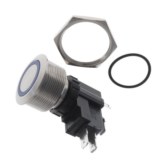 This is manufactured by TE Connectivity ALCOSWITCH Switches. The manufacturer part number is AVH25LSSFE7121604. It is assigned with possible HTSUS value of 8536.50.9035. The product is rohs3 compliant. The product offers long-lasting services of 50,000 cycles. Moreover, it has quick connect - 0.187" (4.7mm) terminal style. The product has -25°c ~ 85°c operating temperature range. It also has a circular - 25.20mm dia dimensional features. The product also provide mechanical stability with 500,000 cycles. It comes in anti-vandal, illuminated configuration. It is made from silver. The product exhibits 125 v of AC voltage rating. In addition, it is reach affected. It is supplied with led, blue illumination. It is designed as a on-on switching function. Its typical moisture sensitivity level is not applicable. The actuator marking of the product corelates with no marking. It has an integral spdt circuit. It has a long 20 weeks standard lead time. Additionally, the product's output is 16a (ac). It is IP rated with ip67 - dust tight, waterproof. The product is available in panel mount, front configuration. The product avh, is a highly preferred choice for users. In addition, box is the available packaging type of the product. The product carries round, button, flush actuator. The nominal illumination voltage of the product is 12 vdc. Moreover, it corresponds to avh25l, a base product number of the product. The product is designated with the ear99 code number.
