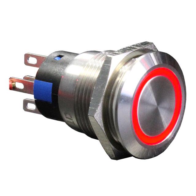 This is manufactured by CIT Relay and Switch. The manufacturer part number is AHU1NBSR24. It is assigned with possible HTSUS value of 8536.50.9031. The product is rohs compliant. The product offers long-lasting services of 50,000 cycles. Moreover, it has solder, quick connect - 0.110" (2.8mm) terminal style. The product has -20°c ~ 65°c operating temperature range. It also has a circular - 19.00mm dia dimensional features. The product also provide mechanical stability with 1,000,000 cycles. It comes in anti-vandal, illuminated configuration. The product exhibits 125 v of AC voltage rating. In addition, it is reach unaffected. It is supplied with led, red illumination. It is shipped in tray package . It is designed as a on-mom switching function. Its typical moisture sensitivity level is 1 (unlimited). The actuator marking of the product corelates with no marking. It has an integral spdt circuit. It has a long 11 weeks standard lead time. Additionally, the product's output is 3a (ac). It is IP rated with ip67 - dust tight, waterproof. The product is available in panel mount, front configuration. The product ahu, is a highly preferred choice for users. It is made from silver. The product carries round, button, flush actuator. The nominal illumination voltage of the product is 24 vdc. Moreover, it corresponds to ahu1, a base product number of the product. The product is designated with the ear99 code number.