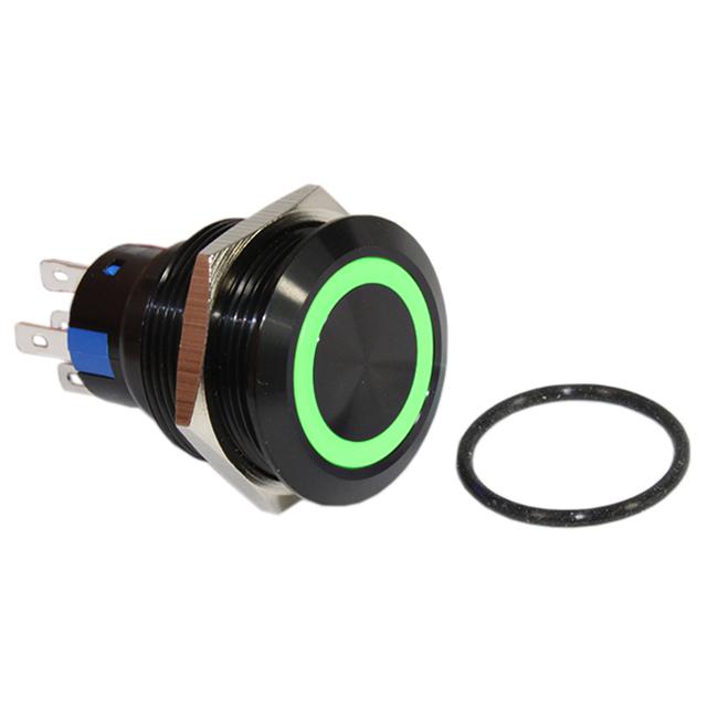 This is manufactured by CIT Relay and Switch. The manufacturer part number is DH22U1NBBGN. It is assigned with possible HTSUS value of 8536.50.9031. The product is rohs compliant. The product offers long-lasting services of 50,000 cycles. Moreover, it has solder lug terminal style. The product has -20°c ~ 55°c operating temperature range. It also has a circular - 22.00mm dia dimensional features. The product also provide mechanical stability with 1,000,000 cycles. It comes in anti-vandal, illuminated configuration. It is made from black. The product exhibits 125 v of AC voltage rating. In addition, it is reach unaffected. It is supplied with led, green illumination. It is designed as a on-mom switching function. Its typical moisture sensitivity level is 1 (unlimited). The actuator marking of the product corelates with no marking. It has an integral spdt circuit. It has a long 11 weeks standard lead time. Additionally, the product's output is 3a (ac). It is IP rated with ip67 - dust tight, waterproof. The product is available in panel mount, front configuration. The product dh22u, is a highly preferred choice for users. In addition, tray is the available packaging type of the product. The product carries round, button, flush actuator. Moreover, it corresponds to dh22u, a base product number of the product. The product is designated with the ear99 code number.