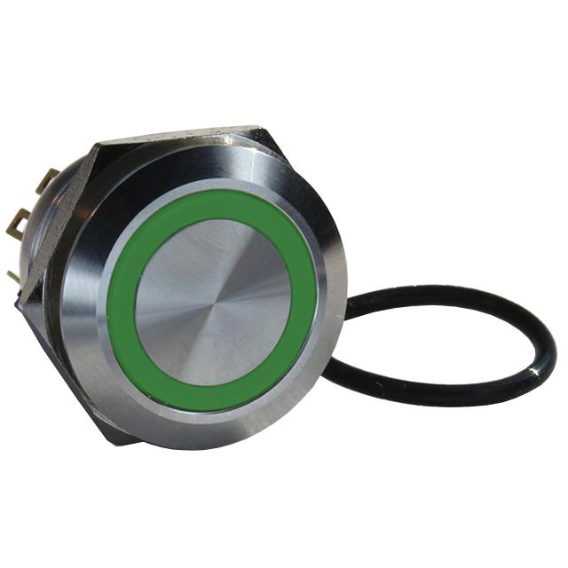 This is manufactured by CIT Relay and Switch. The manufacturer part number is DH221NBSG24. It is assigned with possible HTSUS value of 8536.50.9031. The product is rohs compliant. The product offers long-lasting services of 50,000 cycles. Moreover, it has solder, quick connect - 0.110" (2.8mm) terminal style. 24 v of DC voltage rating. The product has -25°c ~ 70°c operating temperature range. It also has a circular - 22.00mm dia dimensional features. It comes in anti-vandal, illuminated configuration. The product exhibits 125 v of AC voltage rating. In addition, it is reach unaffected. It is supplied with led, green illumination. It is shipped in tray package . It is designed as a on-mom, off-mom switching function. Its typical moisture sensitivity level is 1 (unlimited). The actuator marking of the product corelates with no marking. It has an integral dpst-no/nc circuit. It has a long 9 weeks standard lead time. Additionally, the product's output is 2a (ac/dc). It is IP rated with ip67 - dust tight, waterproof. The product is available in panel mount, front configuration. The product dh, is a highly preferred choice for users. It is made from silver. The product carries round, button, flush actuator. The nominal illumination voltage of the product is 24 vdc. Moreover, it corresponds to dh221, a base product number of the product. The product is designated with the ear99 code number.